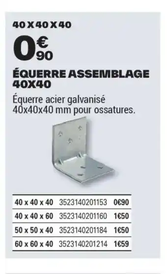 Actuellement en offre chez Brico Dépôt : Équerre assemblage 40x40 ✅ Valable du 25-03 au 12-06.