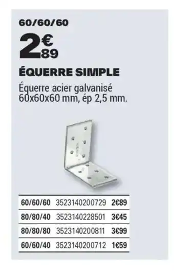 Actuellement en offre chez Brico Dépôt : Équerre simple ✅ Valable du 25-03 au 12-06.