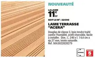 Actuellement en offre chez Brico Dépôt : Facile - lame terrasse acera ✅ Valable du 27-02 au 12-03.