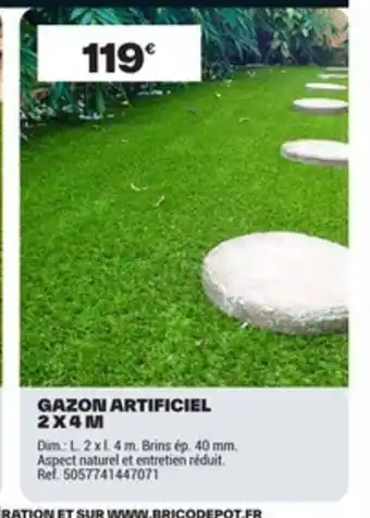 Actuellement en offre chez Brico Dépôt : Gazon artificiel 2x4m ✅ Valable du 27-02 au 12-03.