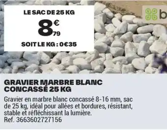 Actuellement en offre chez Brico Dépôt : GRAVIER MARBRE BLANC CONCASSÉ ✅ Valable du 25-03 au 12-06.