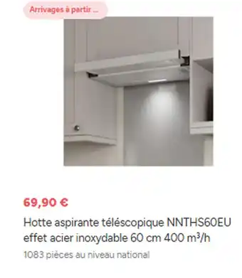 Hotte aspirante téléscopique NNTHS60EU effet acier inoxydable : offres et promos Brico Dépôt à découvrir