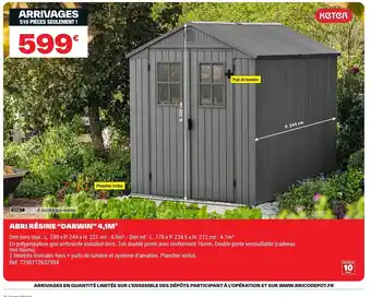 Actuellement en offre chez Brico Dépôt : KETER Abri résine darwin ✅ Valable du 6-03 au 19-03.