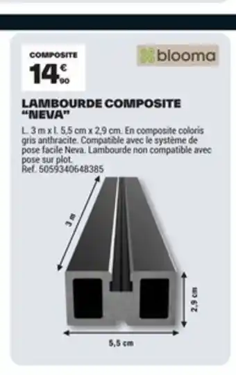 En plus de l'offre Lambourde composite neva, Brico Dépôt propose une large gamme de produits. Consultez le Catalogue Brico Dépôt hebdomadaire pour découvrir les meilleures offres et promotions. En plus de Lambourde composite neva, il y a aussi : Lame composite neva anthracite, Lame composite neva protect & Lot 3 lames cloture composite neva.