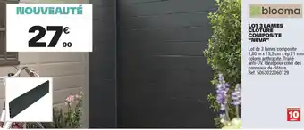 Le prix de l'offre LOT 3 LAMES CLÔTURE COMPOSITE NEVA se trouve également en haut de la page, ainsi que la date à laquelle l'offre est disponible. Vous pouvez également vérifier les prix dans le Catalogue Brico Dépôt actuel ou sur le site Internet de Brico Dépôt. Les offres vous permettent d'acheter les produits Brico Dépôt au prix le plus bas.