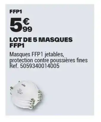 Actuellement en offre chez Brico Dépôt : Lot de 5 masques ffp1 ✅ Valable du 25-03 au 12-06.