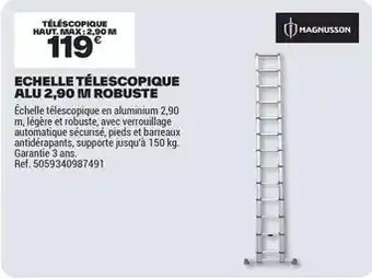 Actuellement en offre chez Brico Dépôt : Magnusson - echelle télescopique alu 2,90 m robuste ✅ Valable du 13-02 au 26-02.