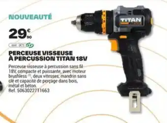 Actuellement en offre chez Brico Dépôt : Perceuse visseuse à percussion titan 18v ✅ Valable du 27-02 au 12-03.