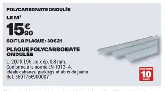 Actuellement en offre chez Brico Dépôt : Plaque polycarbonate ondulée ✅ Valable du 25-03 au 12-06.