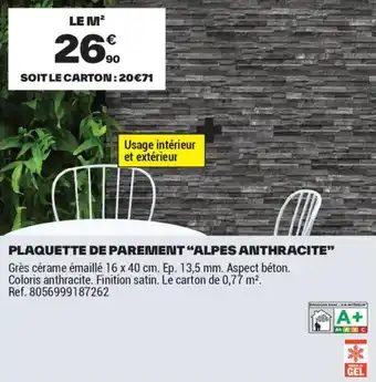 Offre PLAQUETTE DE PAREMENT ALPES ANTHRACITE chez Brico Dépôt