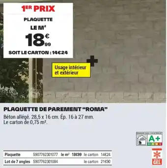 Le prix de l'offre PLAQUETTE DE PAREMENT ROMA se trouve également en haut de la page, ainsi que la date à laquelle l'offre est disponible. Vous pouvez également vérifier les prix dans le Catalogue Brico Dépôt actuel ou sur le site Internet de Brico Dépôt. Les offres vous permettent d'acheter les produits Brico Dépôt au prix le plus bas.