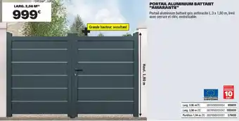 PORTAIL ALUMINIUM BATTANT AMARANTE offres et promotions en ligne chez Brico Dépôt