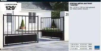 En plus de l'offre PORTAIL MÉTAL BATTANT CASTEL, Brico Dépôt propose une large gamme de produits. Consultez le Catalogue Brico Dépôt hebdomadaire pour découvrir les meilleures offres et promotions. En plus de PORTAIL MÉTAL BATTANT CASTEL, il y a aussi : PORTAIL MÉTAL BATTANT "HORIZON", Portail battant sipo & PORTAIL ALUMINIUM BATTANT ASTIA.