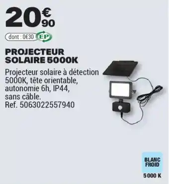 En plus de l'offre PROJECTEUR SOLAIRE 50OOK, Brico Dépôt propose une large gamme de produits. Consultez le Catalogue Brico Dépôt hebdomadaire pour découvrir les meilleures offres et promotions. En plus de PROJECTEUR SOLAIRE 50OOK, il y a aussi : PROJECTEUR SOLAIRE 1000LM, Projecteur solaire & Projecteur solaire.