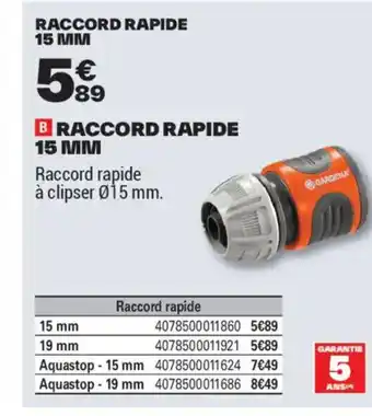 Cette Raccord rapide est maintenant disponible chez Brico Dépôt. Découvrez toutes les promos en cours et profitez de réductions intéressantes. Commandez Raccord rapide en ligne via le site officiel de Brico Dépôt ou achetez-la en magasin à un prix avantageux. Promocatalogues.fr réunit chaque jour les meilleures offres liées à Raccord rapide. Envie d’être informé en premier ? Activez l’alerte en cliquant sur la cloche pour recevoir une notification gratuite dès que ce produit revient en promotion.Questions fréquemment posées au sujet de Raccord rapide