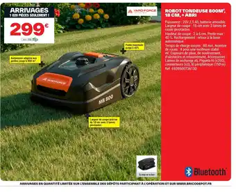 Le prix de l'offre Robot tondeuse se trouve également en haut de la page, ainsi que la date à laquelle l'offre est disponible. Vous pouvez également vérifier les prix dans le Catalogue Brico Dépôt actuel ou sur le site Internet de Brico Dépôt. Les offres vous permettent d'acheter les produits Brico Dépôt au prix le plus bas.