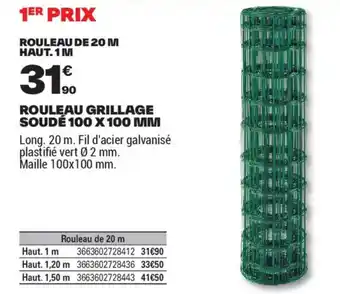 Le prix de l'offre ROULEAU GRILLAGE SOUDÉ 100 X 100 MM se trouve également en haut de la page, ainsi que la date à laquelle l'offre est disponible. Vous pouvez également vérifier les prix dans le Catalogue Brico Dépôt actuel ou sur le site Internet de Brico Dépôt. Les offres vous permettent d'acheter les produits Brico Dépôt au prix le plus bas.