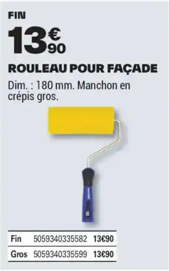 ROULEAU POUR FAÇADE bénéficie actuellement d'une réduction chez Brico Dépôt. Vous trouverez ici toutes les infos utiles sur les prix, la durée de validité et les conditions de l’offre. Pensez à consulter aussi d'autres offres et promotions similaires pour ROULEAU POUR FAÇADE afin d’acheter toujours au bon prix. La promo ROULEAU POUR FAÇADE est valable du 25-03-2026 au 12-06-2026. Offre terminée ? Pas de souci. D'autres offres sur ces produits sont peut-être déjà disponibles. Vous pouvez suivre cette catégorie de produits pour rester informé en cas de nouvelle promotion ROULEAU POUR FAÇADE chez Brico Dépôt. En comparant les offres, vous êtes sûr d’acheter au prix le plus bas possible.Questions fréquemment posées au sujet de ROULEAU POUR FAÇADE