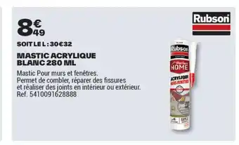 Actuellement en offre chez Brico Dépôt : RUBSON Mastic acrylique blanc ✅ Valable du 25-03 au 12-06.