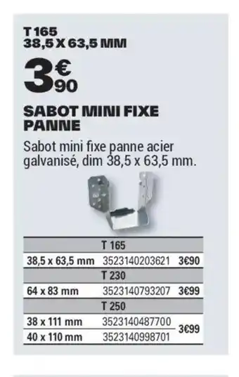 Actuellement en offre chez Brico Dépôt : Sabot mini fixe panne ✅ Valable du 25-03 au 12-06.