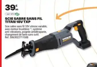 Offre Scie sabre sans fil titan 18v txp chez Brico Dépôt