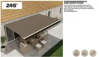 Découvrez les produits les moins chers parmi toutes les offres ! Si vous voulez savoir si Brico Dépôt propose la meilleure remise pour STORE BANNE MANIVELLE SEMI CASSETTE, comparez-la sur la page thèmes ou avec d'autres magasins.
