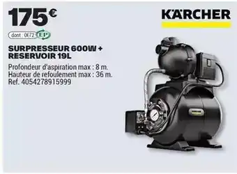 En plus de l'offre Surpresseur 600w+ reservoir 19l, Brico Dépôt propose une large gamme de produits. Consultez le Catalogue Brico Dépôt hebdomadaire pour découvrir les meilleures offres et promotions. En plus de Surpresseur 600w+ reservoir 19l, il y a aussi : Surpresseur 800w + reservoir, Surpresseur + reservoir 20 l & KARCHER Surpresseur 600w + reservoir.
