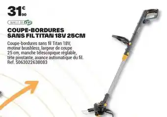 Actuellement en offre chez Brico Dépôt : Titan - coupe-bordures sans fil 18v ✅ Valable du 27-02 au 12-03.