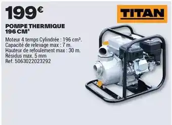 En plus de l'offre Titan - pompe thermique 196 cm, Brico Dépôt propose une large gamme de produits. Consultez le Catalogue Brico Dépôt hebdomadaire pour découvrir les meilleures offres et promotions. En plus de Titan - pompe thermique 196 cm, il y a aussi : TITAN Pompe thermique 196 cm³, Titan - motobineuse thermique 150 cm 60 cm & TITAN Pompe d'évacuation 400w.