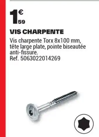 En plus de l'offre Vis charpente, Brico Dépôt propose une large gamme de produits. Consultez le Catalogue Brico Dépôt hebdomadaire pour découvrir les meilleures offres et promotions. En plus de Vis charpente, il y a aussi : Charpente, Vis penture & Vis d'assemblage.