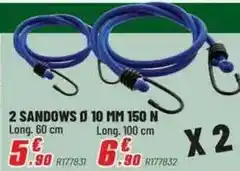 En plus de l'offre 2 sandows, Brico Pro propose une large gamme de produits. Consultez le catalogue hebdomadaire pour découvrir les meilleures offres et promotions. En plus de 2 sandows, il y a aussi : SANDOWS, CROCHETS POUR SANDOWS & SET DE 10 SANDOWS EXPRESS.