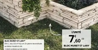 En plus de l'offre BLOC MURET ST LARY, Bricomarché propose une large gamme de produits. Consultez le Catalogue Bricomarché hebdomadaire pour découvrir les meilleures offres et promotions. En plus de BLOC MURET ST LARY, il y a aussi : BLOC MURET ST LARY, Eda muret volcania & Bloc mensuel m.