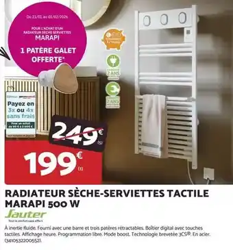 Actuellement en offre chez Bricomarché : Boost - radiateur sèche-serviettes tactile marapi 500 w ✅ Valable du 21-01 au 31-01.