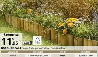 En plus de l'offre BORDURE CALA, Bricomarché propose une large gamme de produits. Consultez le Catalogue Bricomarché hebdomadaire pour découvrir les meilleures offres et promotions. En plus de BORDURE CALA, il y a aussi : BORDURE CALA, BORDURE & BORDURE GEO.