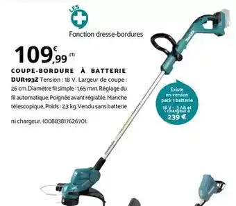 L'offre est disponible dans plusieurs magasins, vérifiez tous les produits pour obtenir le Coupe-bordure a batterie le moins cher. Si vous souhaitez savoir si l'article est en vente avec une plus grosse remise dans un autre magasin, consultez la catégorie 'Bricolage'. Ces offres pourraient aussi vous intéresser : Coupe-bordure à batterie olt 1832, Coupe-bordures à batterie & Carrefour - coupe bordure 20v.