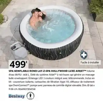 Actuellement en offre chez Bricomarché : Facile - spa gonflable rond lay-z-spa hollywood luxe airjettm ✅ Valable du 27-03 au 17-05.
