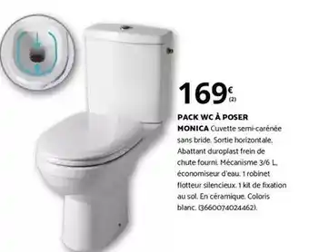 Actuellement en offre chez Bricomarché : Pack wc à poser monica cuvette semi-carène ✅ Valable du 11-02 au 29-03.