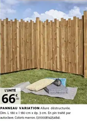En plus de l'offre PANNEAU VARIATION, Bricomarché propose une large gamme de produits. Consultez le Catalogue Bricomarché hebdomadaire pour découvrir les meilleures offres et promotions. En plus de PANNEAU VARIATION, il y a aussi : PANNEAU VARIATION, Panneau variation & Dim - panneau variation.