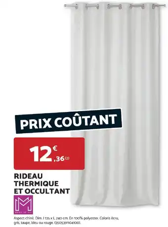 Actuellement, Rideau thermique et occultant est en promotion chez Bricomarché. Toutes les informations utiles comme le prix, les conditions et la durée de validité sont affichées sur cette page. Consultez également les promotions similaires pour Rideau thermique et occultant, afin de faire le meilleur choix. La promo Rideau thermique et occultant est valable du 21-01-2026 au 31-01-2026. Si elle est expirée, regardez les autres offres équivalentes. Vous pouvez aussi suivre cette catégorie de produit pour être alerté lorsqu’une nouvelle promotion Rideau thermique et occultant apparaît chez Bricomarché.Questions fréquemment posées au sujet de Rideau thermique et occultant