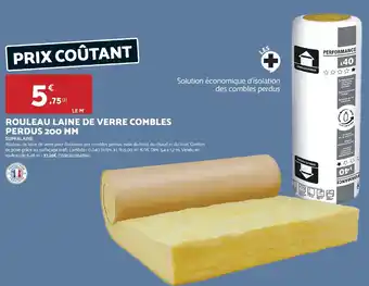 Le prix de l'offre Rouleau laine de verre combles perdus 200 mm se trouve également en haut de la page, ainsi que la date à laquelle l'offre est disponible. Vous pouvez également vérifier les prix dans le Catalogue Bricomarché actuel ou sur le site Internet de Bricomarché. Les offres vous permettent d'acheter les produits Bricomarché au prix le plus bas.