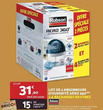 Actuellement en offre chez Bricomarché : Rubson - lot de 2 absorbeurs d'humidité aéro 360 ✅ Valable du 11-02 au 21-02.