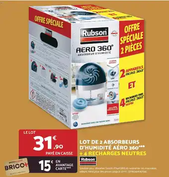 Offre RUBSON Lot de 2 absorbeurs d'humidité aéro 360° + 4 recharges neutres chez Bricomarché