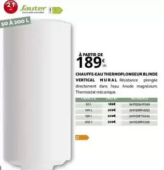 Le prix de l'offre Sauter - chauffe-eau thermoplongeur blende vertical mu arl se trouve également en haut de la page, ainsi que la date à laquelle l'offre est disponible. Vous pouvez également vérifier les prix dans le Catalogue Bricomarché actuel ou sur le site Internet de Bricomarché. Les offres vous permettent d'acheter les produits Bricomarché au prix le plus bas.