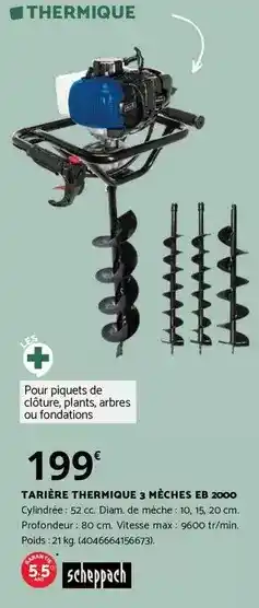 Actuellement en offre chez Bricomarché : Scheppach - tarière thermique 3 mèches ✅ Valable du 27-02 au 5-04.