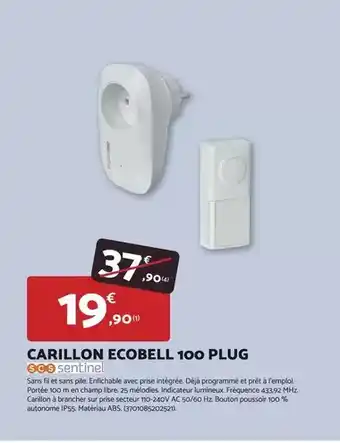 Actuellement en offre chez Bricomarché : Scs sentinel - carillon ecobell 100 plug ✅ Valable du 21-01 au 31-01.