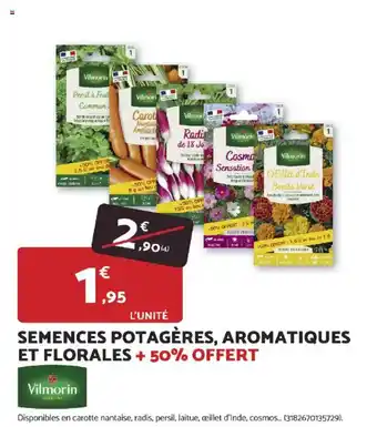Offre VILMORIN Semences potagères, aromatiques et florales + 50% offert chez Bricomarché