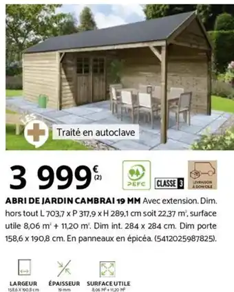 L'offre est disponible dans plusieurs magasins, vérifiez tous les produits pour obtenir le ABRI DE JARDIN CAMBRAI le moins cher. Si vous souhaitez savoir si l'article est en vente avec une plus grosse remise dans un autre magasin, consultez la catégorie 'Bricolage'. Ces offres pourraient aussi vous intéresser : Abri de jardin, ABRIDE JARDIN CAMBRAI 19 MM & Abri de jardin premium 46s.