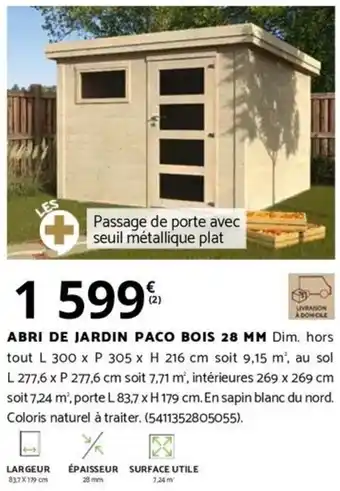 ABRI DE JARDIN PACO BOIS 28 MM offres et promotions en ligne chez Bricorama