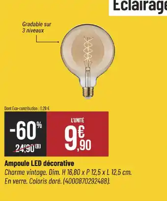 Découvrez les produits les moins chers parmi toutes les offres ! Si vous voulez savoir si Bricorama propose la meilleure remise pour Ampoule led décorative, comparez-la sur la page thèmes ou avec d'autres magasins.