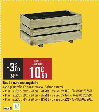 Actuellement en offre chez Bricorama : Bac à fleurs rectangulaire ✅ Valable du 4-03 au 15-03.